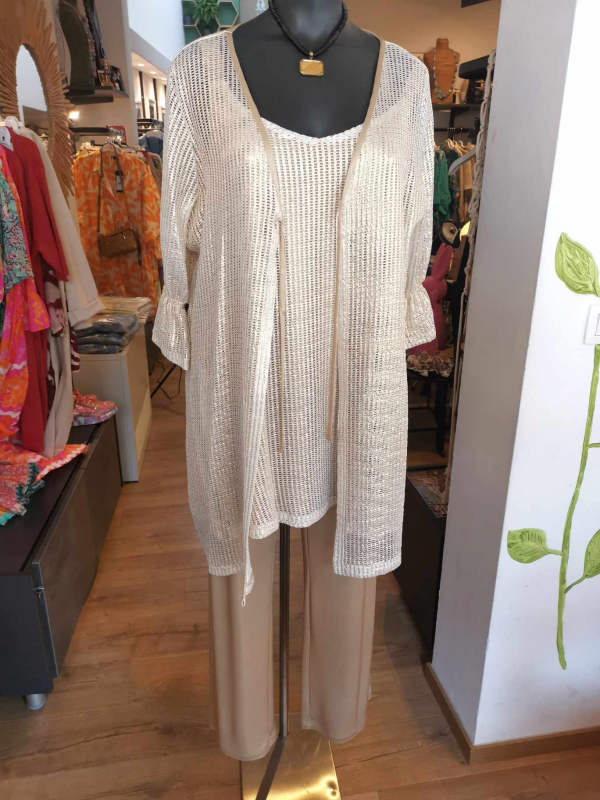 (je suis désolée j'ai oublié de faire la photo du pantalon seul mais c'est un pantalon basique tout élastiqué en jersey comme par exemple les pantalons Yoek basiques)
