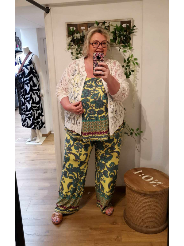 Pantalon souple largeur idéale, ni trop large, ni trop étroit, il conviendra à toutes. En très beau jersey de polyester haut de gamme. Facile à porter, léger et résistant. Entrejambe environ 78 cm.