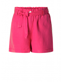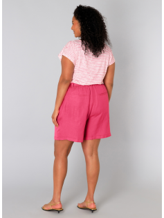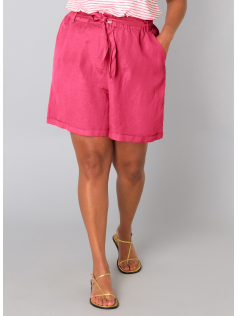 Très beau short rose en mélange lin et viscose. Avec fermeture éclair, taille toute élastiquée et petit lien ceinture. Trop mignon.
