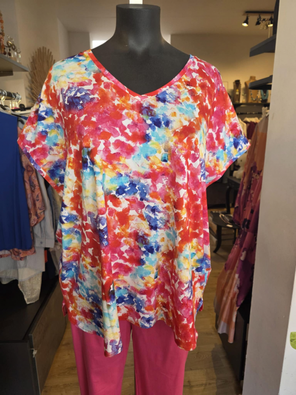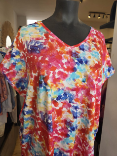 Magnifique tee-shir tout léger en jersey de coton avec un peu d'élasthanne. Magnifiques couleurs. Hauteur : 74 cm.