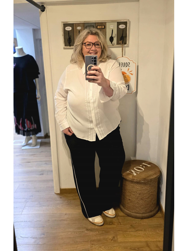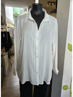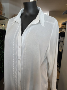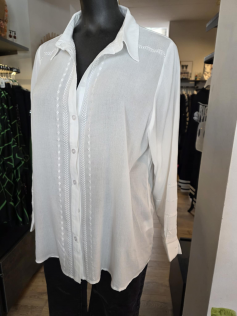 Chemisier léger, broderie discrète. Un chouette chemisier blanc à porter tout de suite ou avec un joli cardigan un peu plus tard. En 100% coton. Hauteur : 70 cm