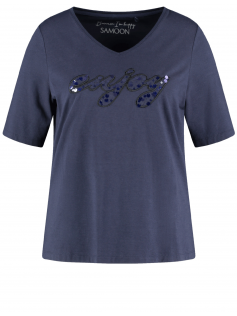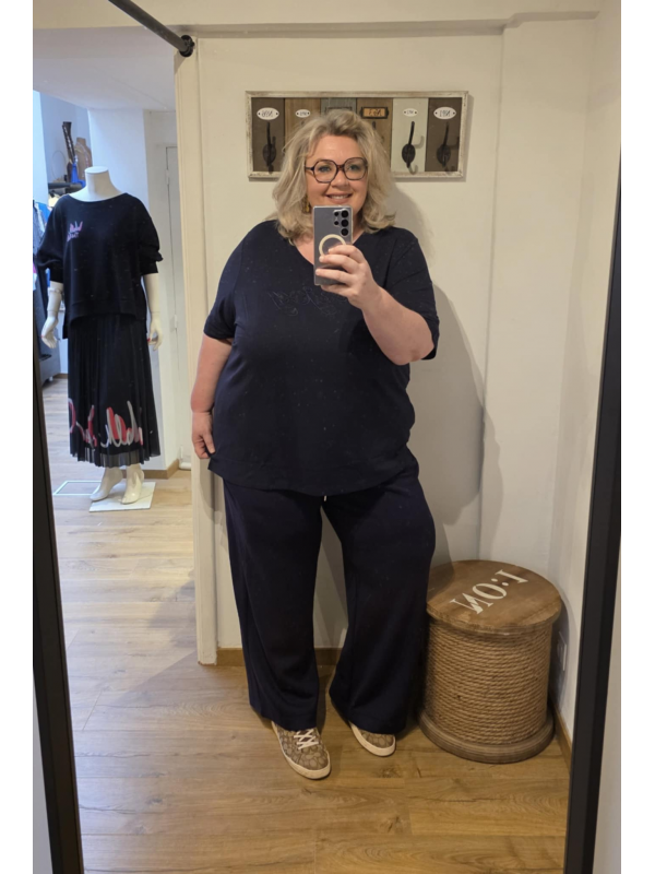 Superbe tee-shirt col, inscription Enjoy à paillettes. En 50% modal, 45% coton et 5% élasthanne. Hauteur : 68 cm.