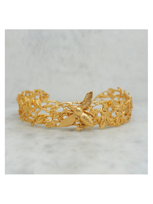 Bracelet en laiton doré à l'or fin. Il s'adapte même aux gros poignets très facilement, il est très maléable. Une pièce magnifique !