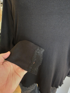 Top côtelé à porter seule ou bien sous une chemise ouverte, un pull sans manches, même en chemisette pourquoi pas. Elle est très extensible et très agréable à porter. En 47% coton, 47% viscose et 6% élasthanne. Hauteur : 73 cm.