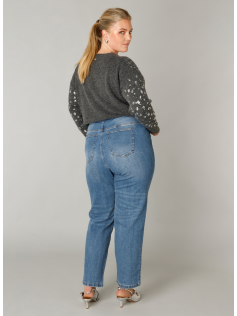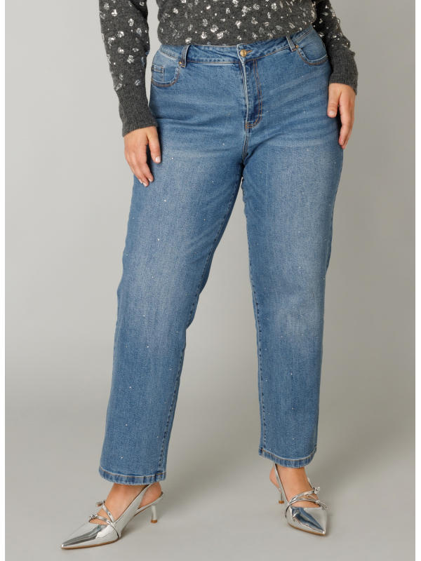 Jeans bien large au niveaudes cuisses et droit dans le bas. Avec des petits brillants tout le devant. Super mignon. Taille bien haute, modèle enveloppant. Entrejambe : 80 cm. il est bien stretch et confortable. Modèle édition limitée.