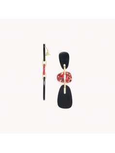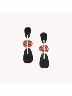 Boucles CLIPS. En jaspe dalmatien, corne et laiton. Hauteur : 8 cm.