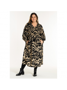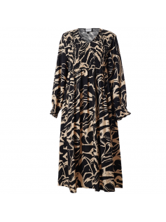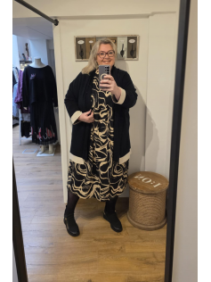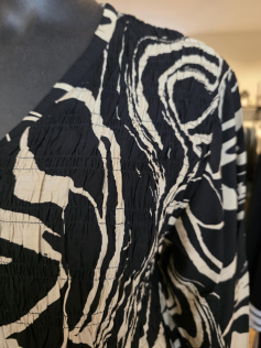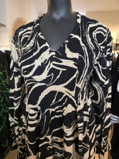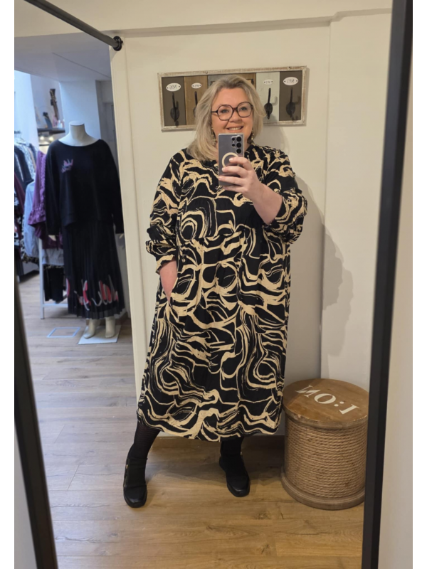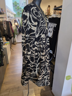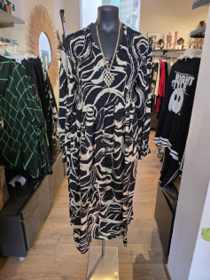 Profitez de l'arrière-saison pour porter cette robe légère smokée devant et dans un tissu magnifique ! Ensuite vous ajouterez un petit gilet et des collants. En 88% viscose et 12% nylon. Hauteur 125 cm