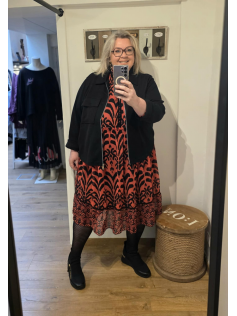 Magnifique robe dans un imprimé très tendance cet hiver inspiré des plus belles collections. En voile doublée, elle est reprise un peu à la taille sans serrer ni comprimer. Col gansé de velours avec un petit bouton noir. La couleur correspond plus à la photo sur laquelle je pose. Les photos officielles sont un peu plus vives. Hauteur environ 125 cm. Elle sera très jolie avec une petite veste noire, un gilet noir sans manches ou encore un maxi gilet.