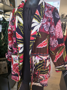 Merveilleuse veste pour mettre un peu de couleur dans l'arrière saison. Elle est en coton matelassé et mesure 80 cm de haut. Elle est réversible poches y compris.