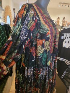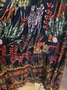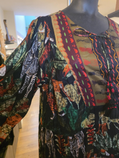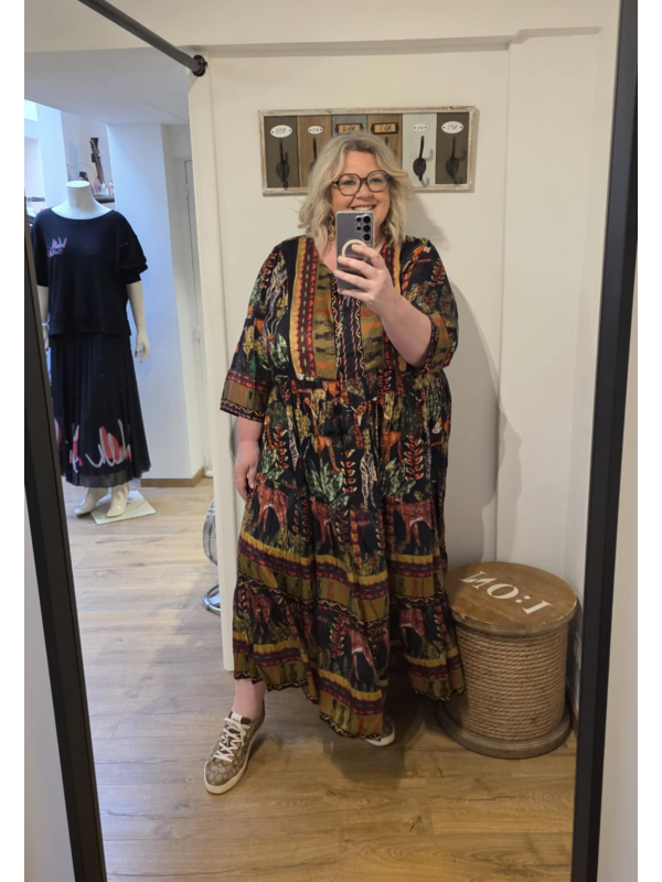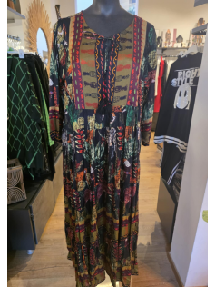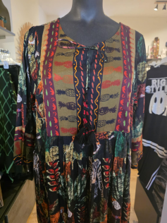 Très agréable et facile à porter, cette robe est légère et peut être portée quasi toute l'année sauf peut-être en plein hiver mais en automne, elle sera parfaite avec des collants et une petite veste.. En 100% rayonne. Hauteur : 130 cm. .
