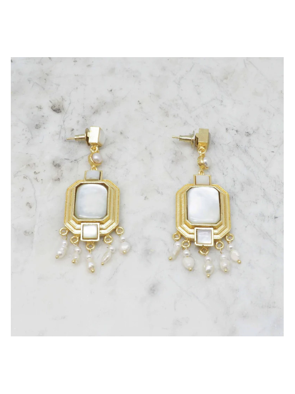 Boucles art déco en laiton doré à l'or fin avec de la nacre. Hauteur : 7 cm