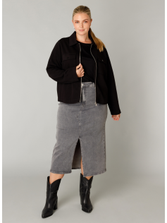Petite veste en tissu ligné ton sur ton (cad texturé) avec fermeture éclair et deux poches plaquées. Elle peut se porter facilement sur tout et n'est pas chaude, donc entre-saison, pour sortir sur une robe etc... Et en tailleur avec le pantalon assorti en suggestion. Bref c'est la veste à avoir. En 82% coton, 14%polyester et 4% élasthanne. Hauteur : 62 cm