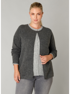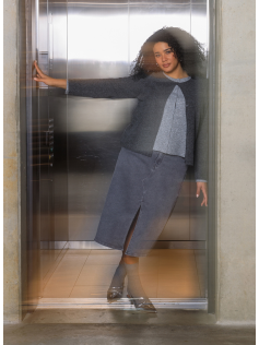 Pull une pièce impression de superposition de deux cardigans. En 73% polyester, 10% polyamide, 10% nylon, 4% laine et 3% élasthanne. Hauteur : 70 cm. A porter sur tout.