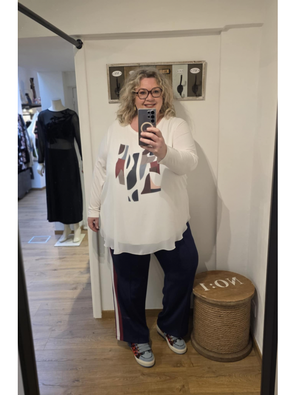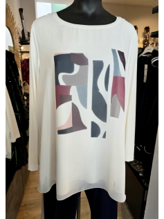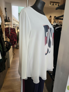 Cela ressemble à un tee-shirt mais ce n'est pas vraiment un tee-shirt. Blouse en jersey de viscose écru reconverte sur le corps d'un très beau voile de haute qualité. Belle pièce fabriquée en Allemagne, avec le savoir-faire qui va avec Légèrement en A. Hauteur : 71 cm.