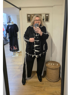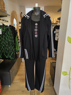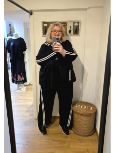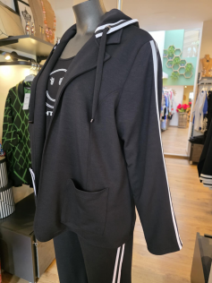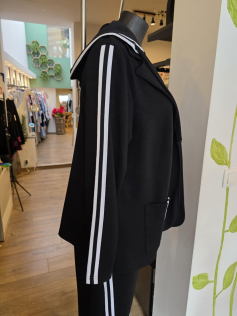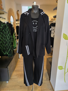 Ce blazer est tout simplement magnifique. Tout doux, léger, sans doublure, avec une capuche et il va super bien avec le pantalon assorti mais bien entendu avec tout. A tester, il taille grand, il est un peu en A, il est parfait faites-moi confiance. En 45% modal, 45% polyester et 10% élasthanne. Hauteur 70 cm.