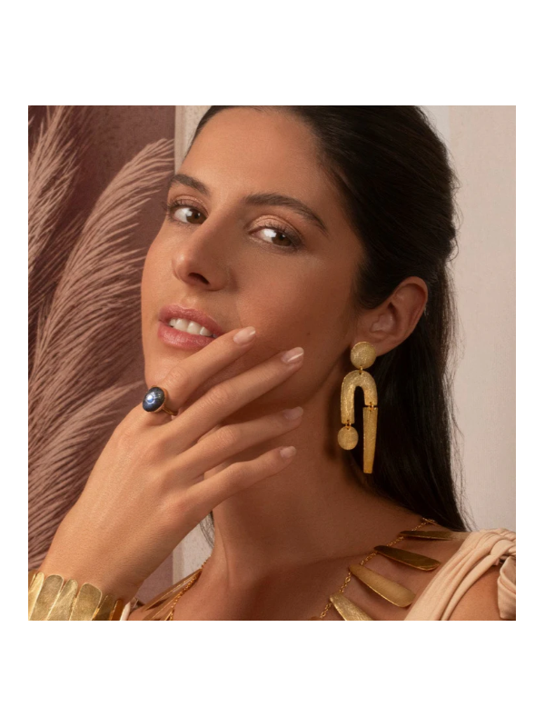 Magnifiques boucles de chez Nikki en laiton très léger. Doré mat. Elles sont fabriquées à la main dans les ateliers parisiens de Niiki Paris. Hauteur environ 8 cm au total.