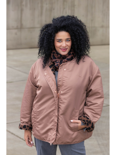 Très jolie veste réversible dans une couleur camel rosé très subtile. Elle se porte côté imperméable ou côté fourrure. Se ferme par fermeture éclair et pression. poches des deux côtés. En 100% nylon. Hauteur : 78 cm.