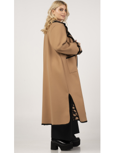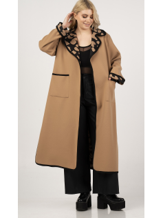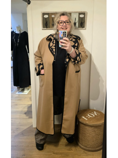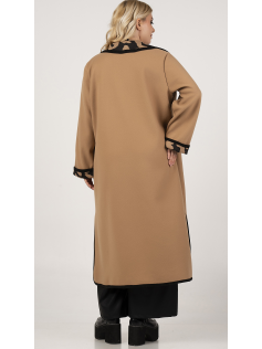 Longue veste/manteau dans un jersey lourd très agréable et souple à la fois. Ce manteau est génial, mou c'est-à-dire qu'il est confortable et peut se garder en voiture, se plier dans un coin etc.. Il est ultra pratique. Sans fermeture avec un intérieur aussi beau que l'extérieur et un beau grand col. Hauteur environ 125 cm. En 100% polyester.