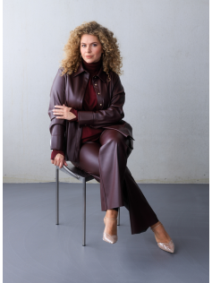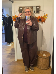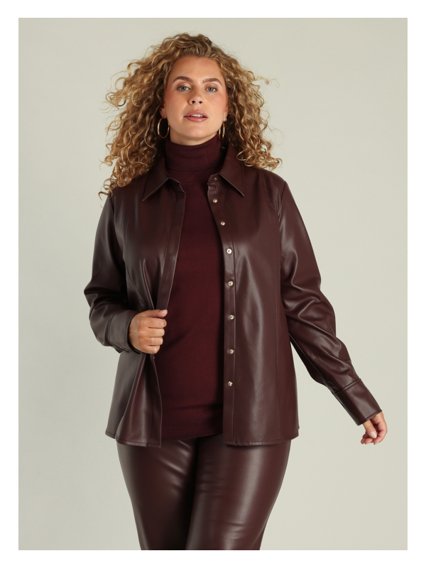 Superchemise en simili cuir de très belle qualité à porter avec tout ou en petite veste ouverte avec une robe mais aussi en ensemble avec le pantalon assorti. En 100% polyuréthane. Hauteur : 74 cm..