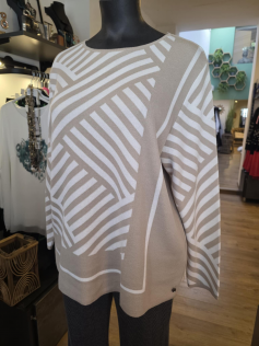 Un vrai coup de coeur pour ce très beau pull de haute qualité en beige et écru. Beau tricot qui ne peluche pas car il est en 50% coton et 50% acrylique. Très belle longueur de 80 cm. Un très beau produit encore fabriqué en Allemagne comme le pull présenté en suggestion.