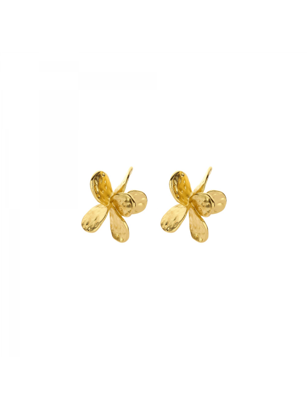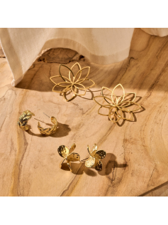 Petites fleurs en métal doré mat sans nickel. Discrètes et élégantes. Largeur et hauteur 2.5 cm.
