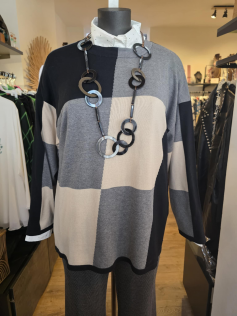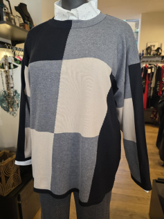 Très beau pull de haute qualité, un peu luxueux, classique mais super classe. Avec des carreaux (ils ne sont pas droits c'est normal). Beau tricot qui ne peluche pas car il est en 50% coton et 50% acrylique. Très belle longueur de 80 cm. Un très beau produit encore fabriqué en Allemagne comme le pull présenté en suggestion.