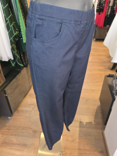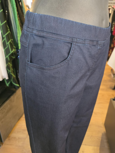 Pantalon denim style jeans mais plus souple et plus léger forme près du corps En 78% coton, 18% polyester et 4% élasthanne. Très confortable et pratique. Entrejambe : 75 cm donc pas trop long.