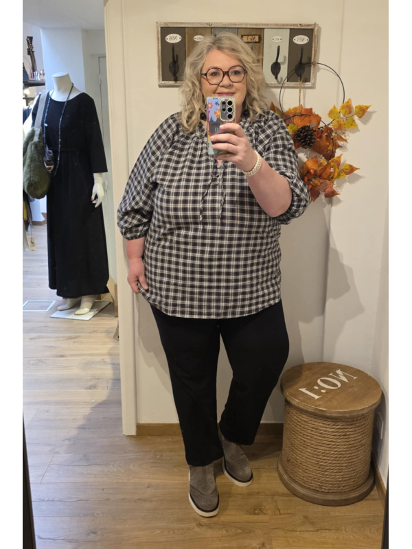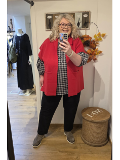 Jolie petite blouse toute fraîche à porter avec du rouge par exemple mais aussi toutes les autres couleurs ! Manches raglan 3/4 avec élastique qui ne comprime pas. Petit lien à nouer au col ou à laisser pendre. En 100% coton. Hauteur 73 cm.