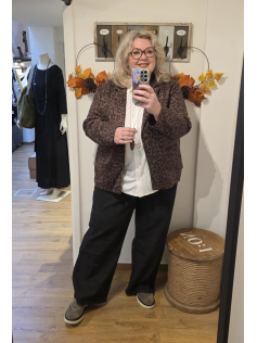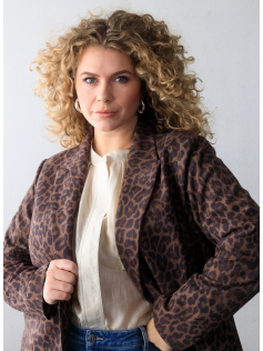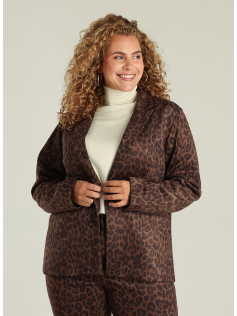Blazer cintré en peau de pêche, tout doux, tout souple. A porter en total look avec le pantalon assorti en suggestion ou avec un pantalon noir ou marron. On peut même le porter avec une robe noire par exemple. En 90% polyester et 10% élasthanne. Hauteur : 70 cm.