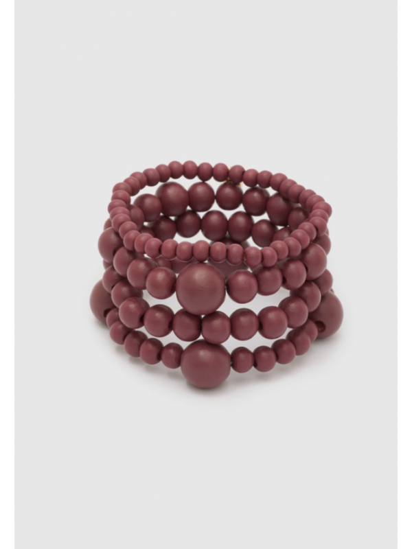 Lot de bracelets en perles de bois lie de vin. Bien large, tour 20 cm.