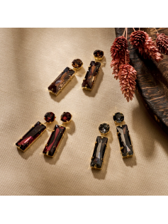 Superbes boucles en strass bleu. Métal doré sans nickel. Hauteur : 4.5 cm, hauteur passe-partout qui convient à toutes.