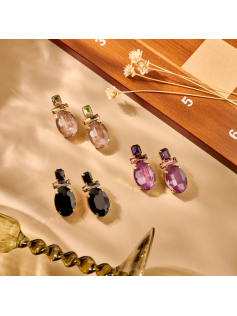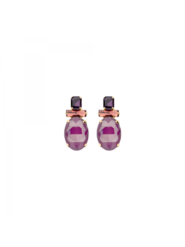 Boucles en métal et verre. Tige sans nickel. Hauteur : 4 cm