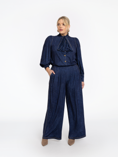 Pantalon ultra large façon jeans mais tout extensible et super agréable à porter. Il fera un ensemble magnifique avec la chemise assortie en suggestion. On peut aussi ajouter un beau blazer. En jersey de polyester extensible. Entrejambe : 80 cm.