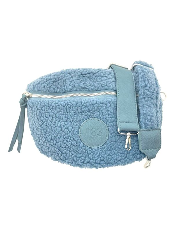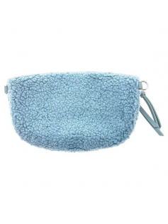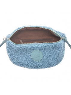 Adorable sac banane en teddy bleu clair avec deux lanières amovibles. Une en simili cuir et une en fausse fourrure. Adorable !