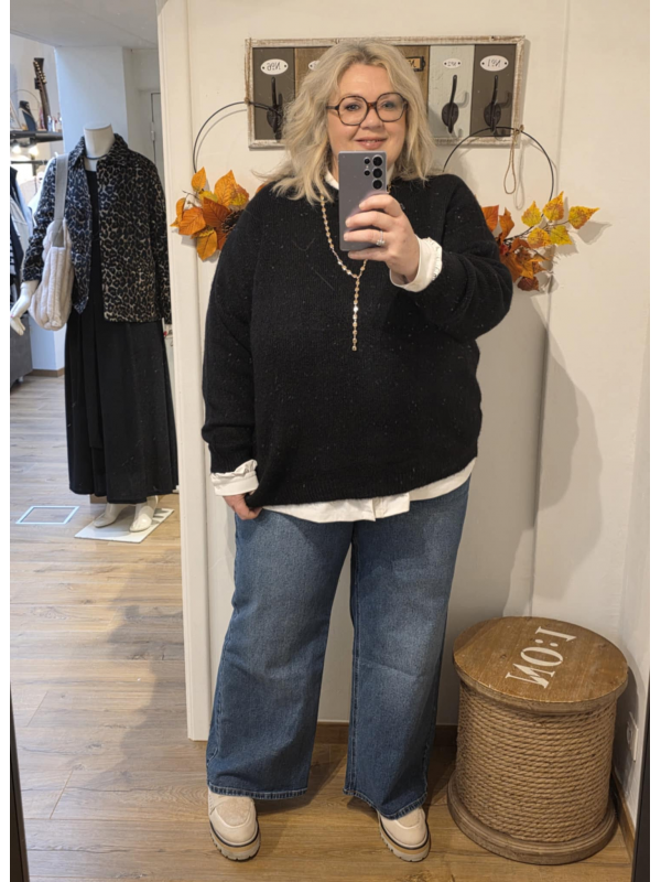 Pull col rond tout doux. En 43% nylon, 26% polyamide, 13% laine, 13% alpaca et 5% élasthanne. Hauteur environ 70 cm. Taille bien.