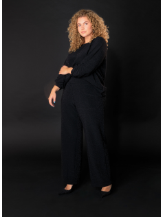 Pantalon super agréable en lurex extensible facile à porter et qui fera un chouette ensemble avec la blouse assortie en suggestion mais on peut aussi casser le style avec un pull par exemple. Il est tout élastiqué et bien extensible et les jambes sont bien larges. En 91% polyester, 6% fibres métalliques et 3% élasthanne. Entrejambe : 80 cm.