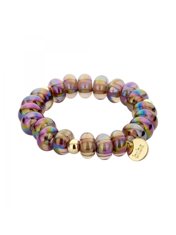 Ce bracelet n'est pas plus large que les bracelets traditionnels mais ils sont faits pour les poignets plus larges. Ca me convient très bien donc n'ayez crainte c'est comme les autres. En résine, avec des reflets, monté sur élastique.