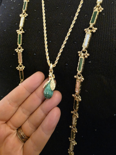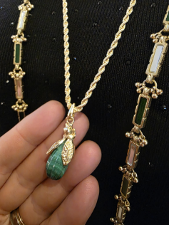 Collier avec médaillon en malachite. Tout en laiton doré à l'or fin. Fait à la main à Paris. Création originale de la maison Niiki Biijoux