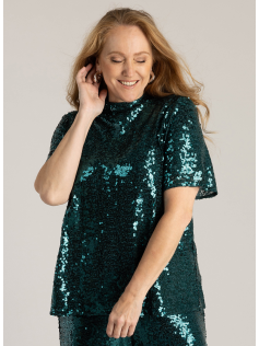 Magnifique blouse à paillettes à prix abordable. Doublée donc ne gratte pas. Petit col montant et se fermant avec deux petits boutons. En 95% polyester et 5% élasthanne. Hauteur : 68 cm