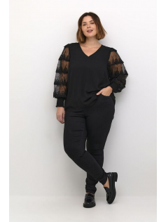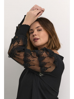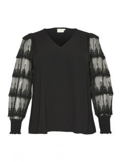 Blouse noire avec un col v et des manches dans une magnifique dentelle raffinée. Hauteur 69 cm. En 100% polyester.