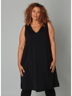 Robe passe-partout style maxi top en A super fluide et un peu épaisse. A porter avec les robes chemises ouvertes en suggestion pour un look vraiment sympa. La qualité est incroyable. A tester. En 94% polyester et 6% élasthanne. Hauteur : 105 cm.
