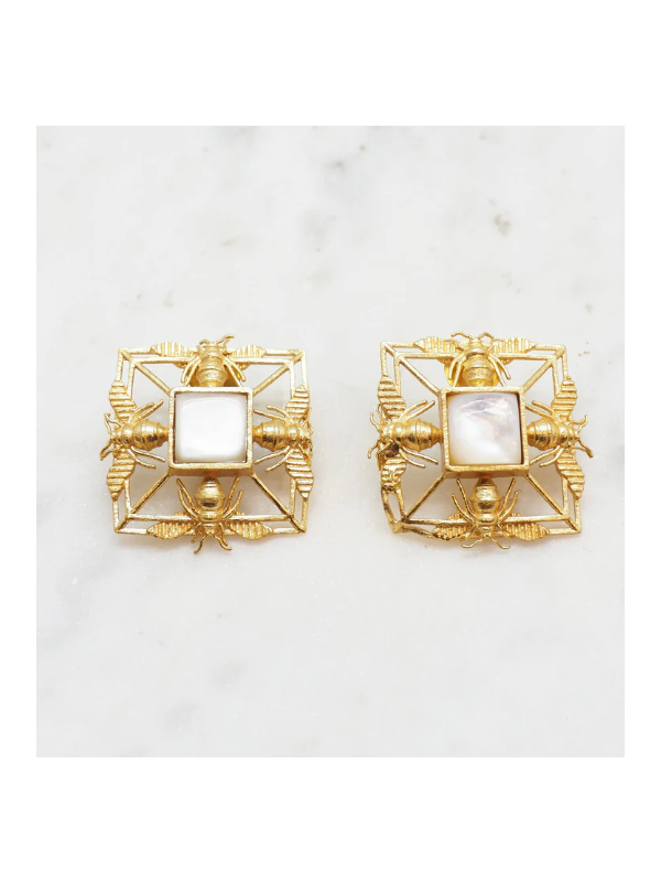 Boucles carrées en laiton plaqué or et nacre. Intemporelles. Sublimes.