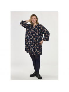 Vous aimez le long ? Vous allez adorer cette longue tunique aspect fleurs brodées sur fond bleu marine. Elle est vraiment agréable à porter, a des poches sur le côté et les manches 3/4 qu'on peut relever avec une patte de boutonnage. A porter avec un jeans tout de suite mais aussi sur un pantalon blanc l'été pour une tenue légère et aérienne. En 100% viscose. Longueur : 93 cm