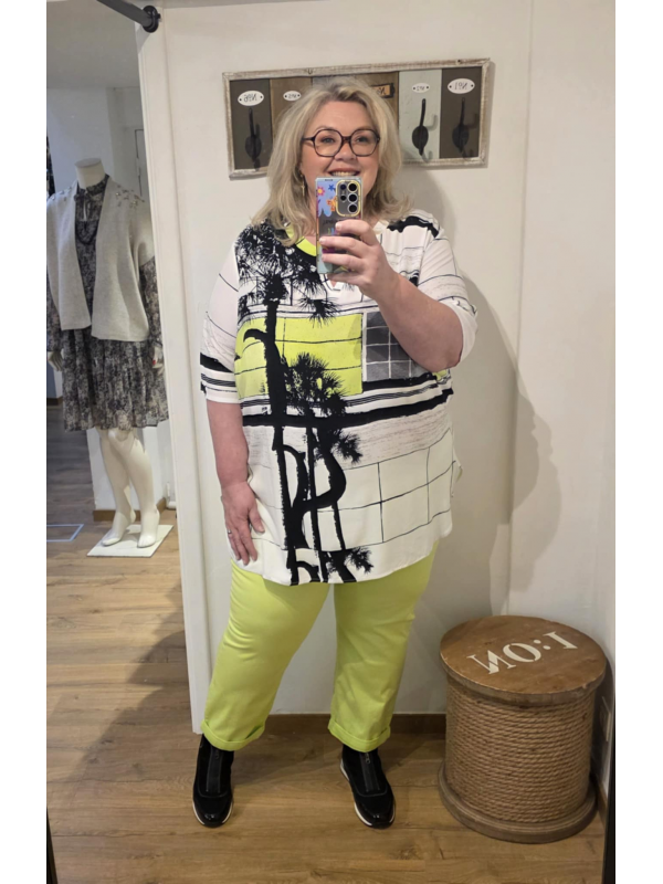 Jeans en toile de coton tout élastiqué dans une superbe couleur un peu fluo (mais juste ce qu'il faut) qui mettra du peps dans votre printemps et bien entendu en été. A retrousser selon vos goûts donc il conviendra à toutes. Entrejambe environ 78 cm.