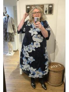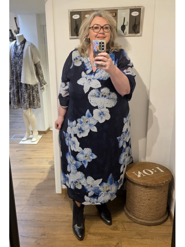 Vous cherchez une robe habillée qui ne demande pas autre chose qu'elle-même ? Celle-ci est magnifique, classe et malgré tout discrète avec son fond marine. L'imprimé orchidée est très bien réussi est très raffiné. La robe est légèrement en A mais appuyée sur le haut. Elle est doublée également. On peut la porter ensuite pour les belles soirées d'été ou en vacances. En 73% lyocell et 27% polyamide. Hauteur environ 130 cm.