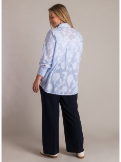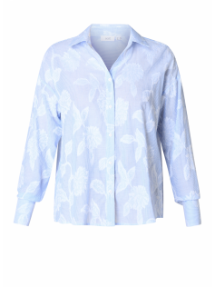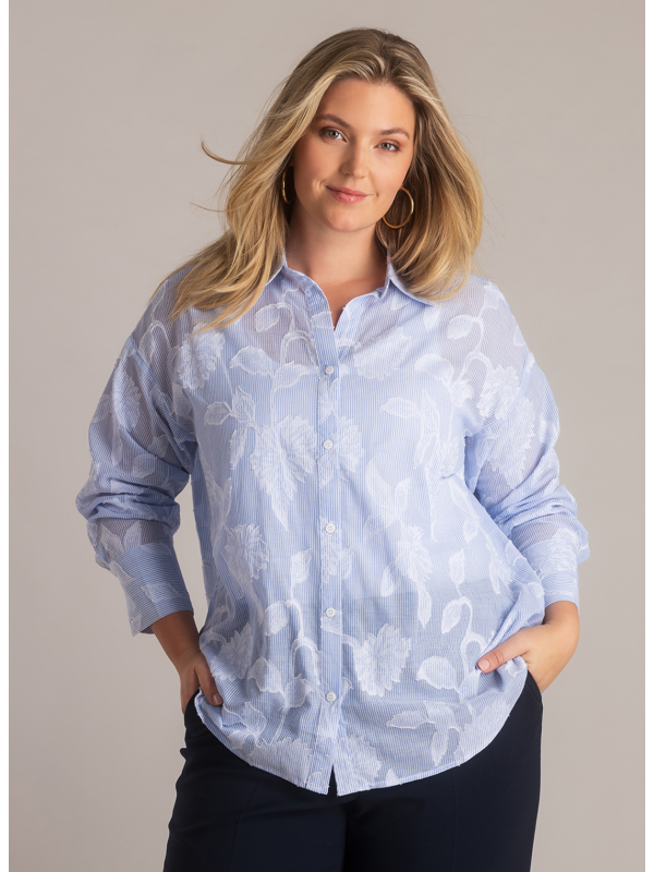 Le chemisier super léger et un peu transparent avec des lignes bleu ciel et blanc et des fleurs brodées est vraiment magnifique et facile d'entretien. Son coton est fin et ne nécessite pas de grand repassage. En 100% coton. Hauteur : 82 cm.