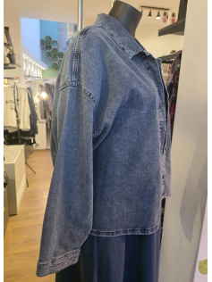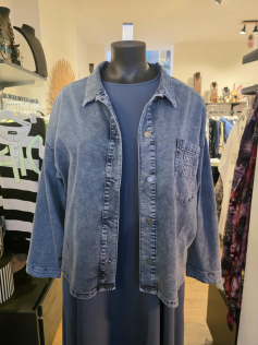 Veste en jeans dans un très beau coloris qui change des vestes traditionnelles. Entre la veste et la chemise. Inscription brodée sur la poche avant. Forme un peu oversize (donc elle taille bien). Hauteur environ 68 cm. Très beau produit de qualité.