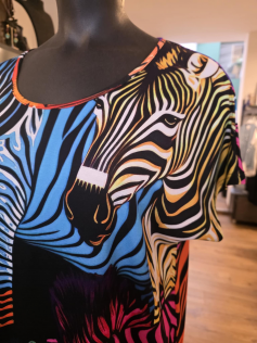Super beau tee-shirt en jersey de viscose bien extensible. Très belle qualité. Hauteur 73 cm.