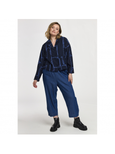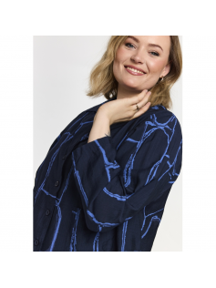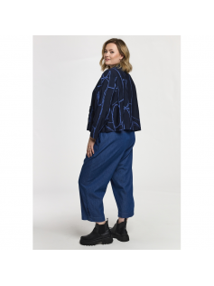 Très belle petite veste bleu marine à porter sur tout mais aussi sur la robe tunique en suggestion. En 80% viscose et 20% polyester. Hauteur 66 cm.