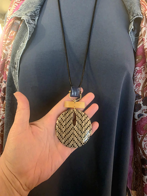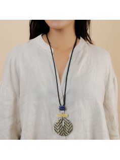 Très beau sautoir artisale de chez Nature Bijoux. Monté sur un cordon en coton ciré. Longueur : 82 cm